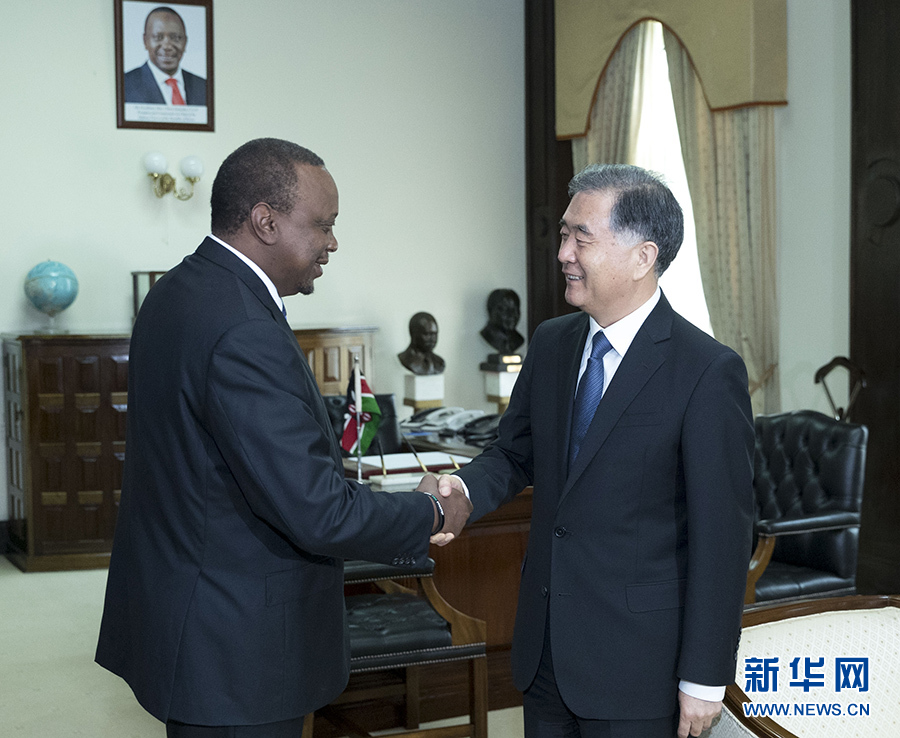 會(huì)見肯雅塔時(shí),汪洋首先轉(zhuǎn)達(dá)了習(xí)近平主席的親切問候和良好祝愿。汪洋說,2017年5月習(xí)近平主席和總統(tǒng)閣下共同將中肯關(guān)系提升為全面戰(zhàn)略合作伙伴關(guān)系,為兩國(guó)關(guān)系未來發(fā)展指明了方向。此次訪問我充分感受到肯經(jīng)濟(jì)社會(huì)的蓬勃發(fā)展和中肯友好交往的強(qiáng)勁勢(shì)頭,中肯合作已成為中非合作的典范。今年是中肯建交55周年,雙方應(yīng)進(jìn)一步深化兩國(guó)政治互信,加強(qiáng)發(fā)展戰(zhàn)略對(duì)接,在涉及彼此核心利益的重大關(guān)切問題上更加堅(jiān)定地相互支持,推進(jìn)更寬領(lǐng)域、更高水平務(wù)實(shí)合作,密切在國(guó)際和地區(qū)事務(wù)中的協(xié)調(diào)配合。今年9月中非合作論壇北京峰會(huì)將宣布引領(lǐng)新時(shí)代中非合作的新舉措,促進(jìn)中非在更高水平上實(shí)現(xiàn)合作共贏、共同發(fā)展,歡迎總統(tǒng)閣下出席,共襄中非友好盛舉。