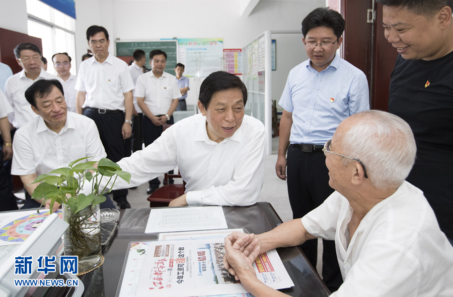 7月19日至23日,中共中央政治局常委、全國人大常委會委員長栗戰(zhàn)書在江西調(diào)研。這是7月20日,栗戰(zhàn)書專程來到瑞金市葉坪鄉(xiāng)仰山村,在村醫(yī)務(wù)室詢問村民看病等情況。 新華社記者黃敬文 攝