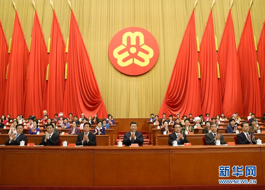 10月30日,中國(guó)婦女第十二次全國(guó)代表大會(huì)在北京人民大會(huì)堂開幕。習(xí)近平、李克強(qiáng)、栗戰(zhàn)書、汪洋、王滬寧、趙樂際、韓正等在主席臺(tái)就座,祝賀大會(huì)召開。 新華社記者 鞠鵬 攝
