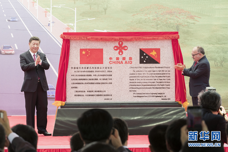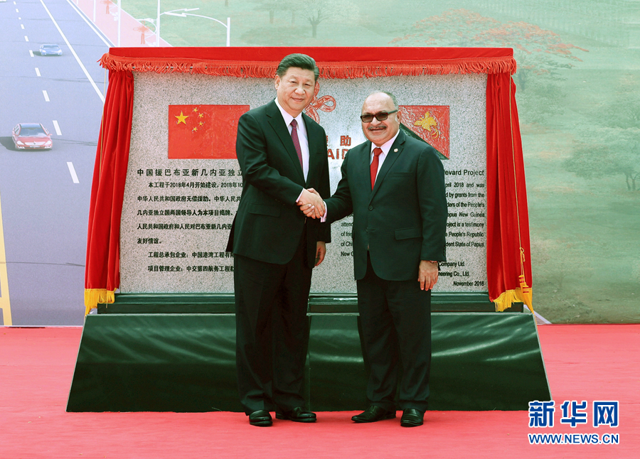 11月16日,國(guó)家主席習(xí)近平在莫爾茲比港和巴布亞新幾內(nèi)亞總理奧尼爾共同出席中國(guó)援建的獨(dú)立大道移交啟用儀式。新華社記者 鞠鵬 攝
