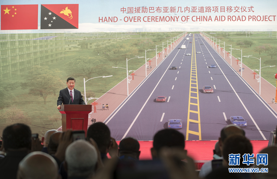 11月16日,國(guó)家主席習(xí)近平在莫爾茲比港和巴布亞新幾內(nèi)亞總理奧尼爾共同出席中國(guó)援建的獨(dú)立大道移交啟用儀式。新華社記者 黃敬文 攝