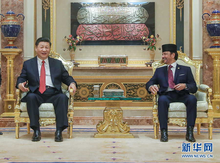 新華社斯里巴加灣市11月19日電(記者霍小光 李建敏 魏建華)國家主席習(xí)近平19日在斯里巴加灣同文萊蘇丹哈桑納爾舉行會談。兩國元首高度評價中文關(guān)系積極發(fā)展勢頭,一致決定建立中文戰(zhàn)略合作伙伴關(guān)系,做政治互信、經(jīng)濟(jì)互利、人文互通、多邊互助的好伙伴。