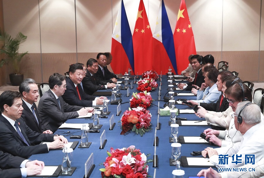 11月21日,國(guó)家主席習(xí)近平在馬尼拉會(huì)見(jiàn)菲律賓眾議長(zhǎng)阿羅約和參議長(zhǎng)索托?!⌒氯A社記者 龐興雷 攝