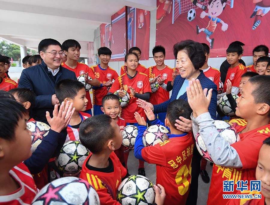 12月11日,中共中央政治局委員、國務(wù)院副總理、中央代表團(tuán)副團(tuán)長孫春蘭率中央代表團(tuán)二分團(tuán),帶著以習(xí)近平同志為核心的黨中央的親切關(guān)懷和全國人民的美好祝福,赴防城港看望慰問各族各界干部群眾,共同慶祝廣西壯族自治區(qū)成立60周年。這是孫春蘭在東興市足球訓(xùn)練基地與青少年足球運(yùn)動員交流。 新華社記者 申宏 攝