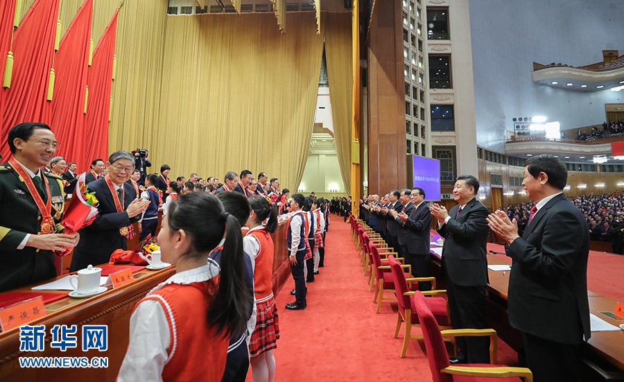 12月18日,慶祝改革開放40周年大會(huì)在北京人民大會(huì)堂隆重舉行。中共中央總書記、國(guó)家主席、中央軍委主席習(xí)近平在大會(huì)上發(fā)表重要講話。這是習(xí)近平等鼓掌向受表彰人員表示祝賀。 新華社記者 鞠鵬 攝