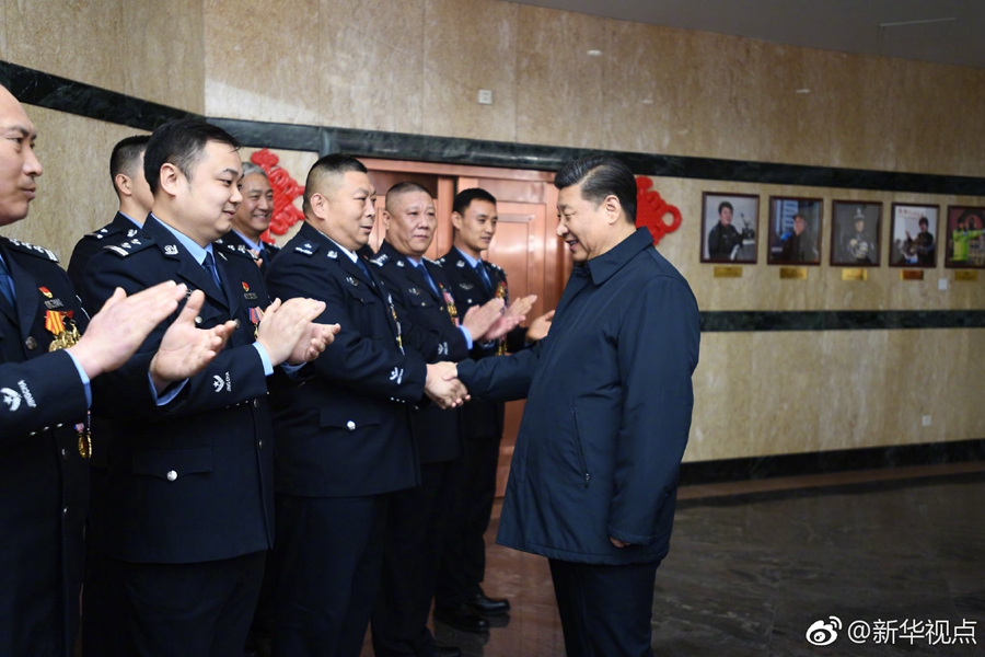 中華民族傳統(tǒng)節(jié)日農(nóng)歷春節(jié)來臨之際,習(xí)近平總書記在北京看望慰問基層干部群眾,向全國(guó)各族人民致以美好的新春祝福。2月1日上午,習(xí)近平首先來到北京市公安局考察調(diào)研,看望公安干警,并視頻連線一線執(zhí)勤民警。(記者張曉松、謝環(huán)馳) ????