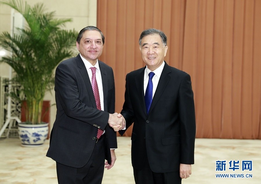 4月15日,全國政協(xié)主席汪洋在北京會(huì)見巴基斯坦參議院副主席曼德維瓦拉。 新華社記者 丁林 攝