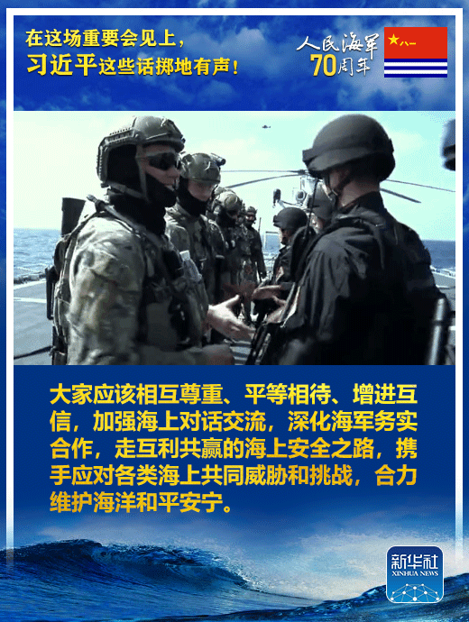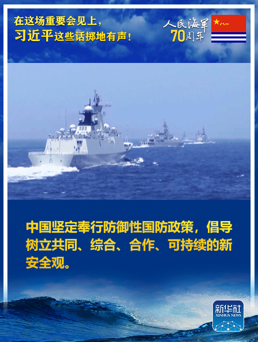 國家主席、中央軍委主席習(xí)近平23日上午在青島集體會(huì)見了應(yīng)邀出席中國人民解放軍海軍成立70周年多國海軍活動(dòng)的外方代表團(tuán)團(tuán)長,代表中國政府和軍隊(duì)向出席活動(dòng)的各國海軍官兵表示熱烈歡迎。
