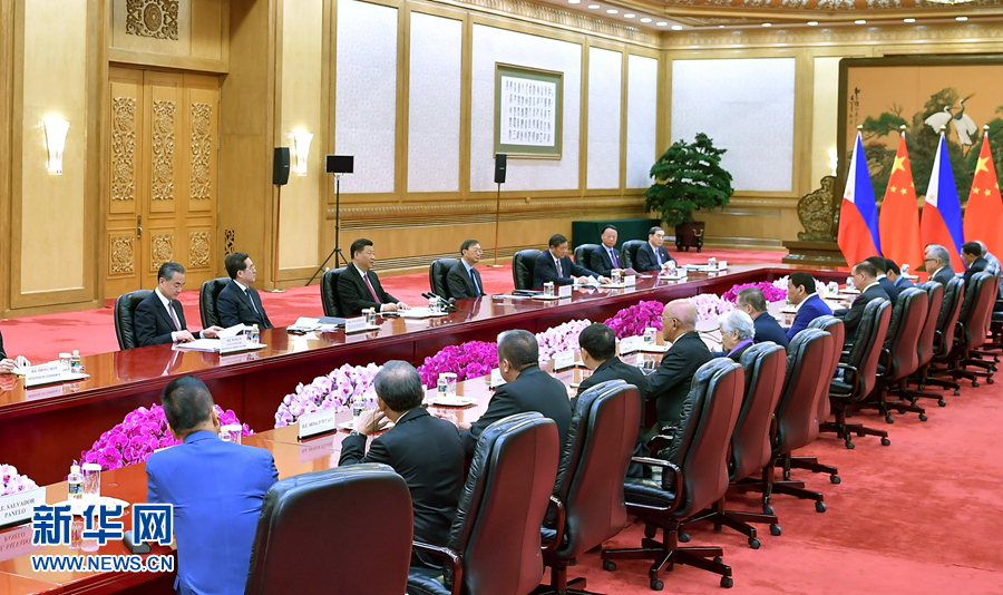 習(xí)近平指出,過去3年,中菲關(guān)系完成轉(zhuǎn)圜、鞏固、提升“三部曲”,步入新的發(fā)展階段。實(shí)踐證明,中菲堅持睦鄰友好順應(yīng)歷史潮流,符合人民期待,是唯一正確選擇。我每次同你交談都推心置腹,坦誠相見,為的是我們兩國和兩國人民的福祉。我愿同總統(tǒng)先生一道,繼續(xù)從戰(zhàn)略高度和長遠(yuǎn)角度把握好兩國關(guān)系正確航向。雙方要堅持睦鄰友好的大方向,共創(chuàng)攜手發(fā)展的大格局,發(fā)揮妥處分歧的大智慧,把握世界發(fā)展的大潮流。共建“一帶一路”倡議同總統(tǒng)先生提出的“大建特建”規(guī)劃高度契合,雙方合作卓有成效。中方愿同菲方深化發(fā)展戰(zhàn)略對接,在共建“一帶一路”框架內(nèi)打造合作亮點(diǎn),深化中菲兩國以及地區(qū)各國聯(lián)通和發(fā)展。雙方要重信守諾,發(fā)揚(yáng)伙伴精神,保持南海和平穩(wěn)定,加強(qiáng)海上合作。中方將繼續(xù)在禁毒、反恐等問題上全力支持菲律賓人民的正義事業(yè)。