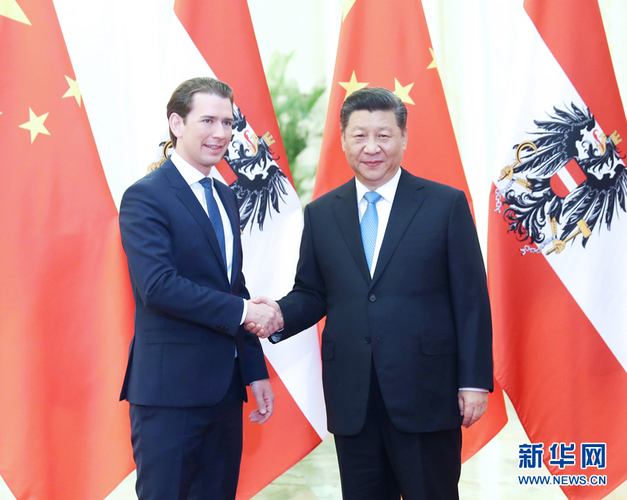 4月29日,國家主席習(xí)近平在北京人民大會堂會見奧地利總理庫爾茨。 新華社記者 劉衛(wèi)兵 攝