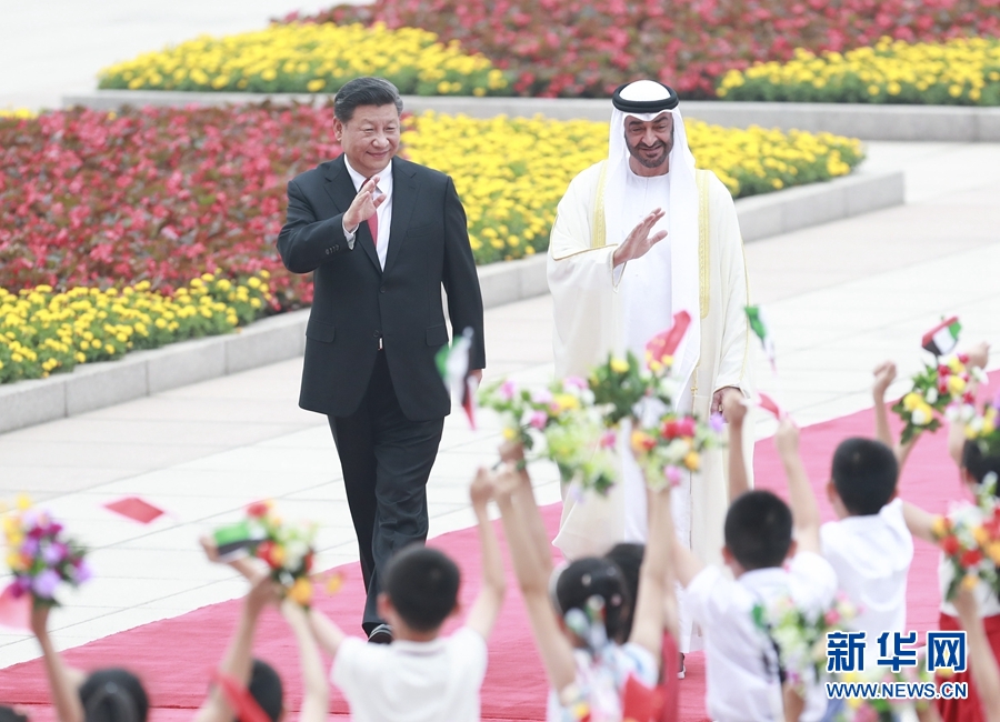 7月22日,國(guó)家主席習(xí)近平在北京人民大會(huì)堂同阿聯(lián)酋阿布扎比王儲(chǔ)穆罕默德舉行會(huì)談。這是會(huì)談前,習(xí)近平在人民大會(huì)堂東門外廣場(chǎng)為穆罕默德舉行歡迎儀式。新華社記者翟健嵐攝