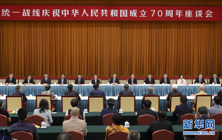 新華社北京9月11日電(記者王琦)統(tǒng)一戰(zhàn)線慶祝中華人民共和國成立70周年座談會11日在京召開。中共中央政治局常委、全國政協(xié)主席汪洋出席會議并講話。他強調,統(tǒng)一戰(zhàn)線是中國共產黨領導的廣泛政治聯(lián)盟,具有鮮明的中國特色,過去是、現(xiàn)在是、今后仍然是黨的事業(yè)取得勝利的重要法寶。要以習近平新時代中國特色社會主義思想為指導,深入學習貫徹習近平總書記關于加強和改進統(tǒng)一戰(zhàn)線工作的重要思想,切實把中共中央對統(tǒng)一戰(zhàn)線的決策部署落實下去、把廣大統(tǒng)一戰(zhàn)線成員的智慧力量凝聚起來,為實現(xiàn)中華民族偉大復興的中國夢共同奮斗。