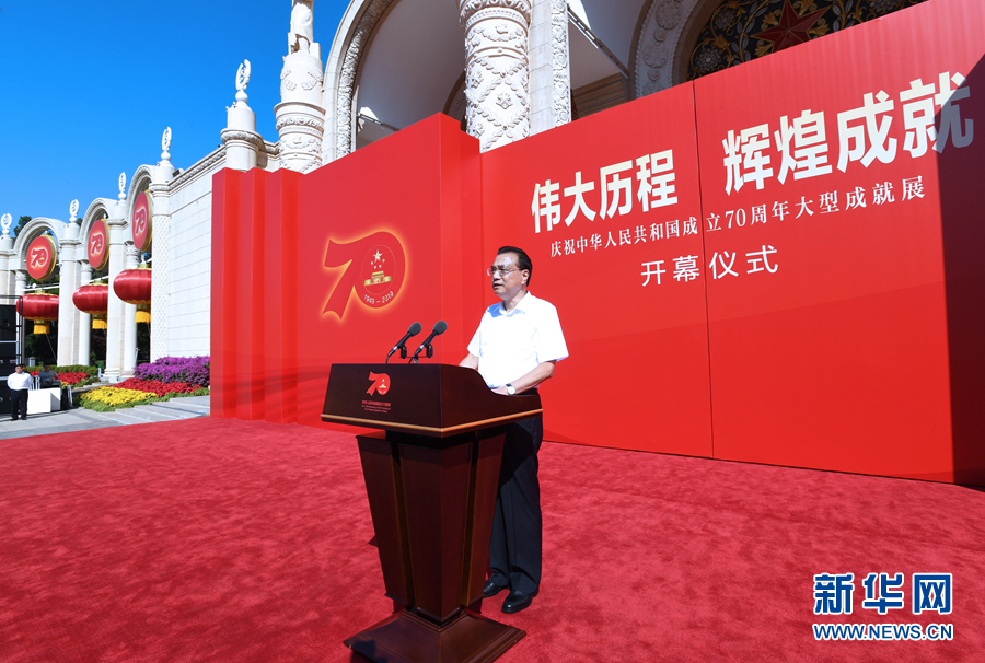 9月23日,“偉大歷程 輝煌成就——慶祝中華人民共和國成立70周年大型成就展”開幕式在北京展覽館舉行。中共中央政治局常委、國務(wù)院總理李克強(qiáng)出席開幕式并講話。 新華社記者 饒愛民 攝