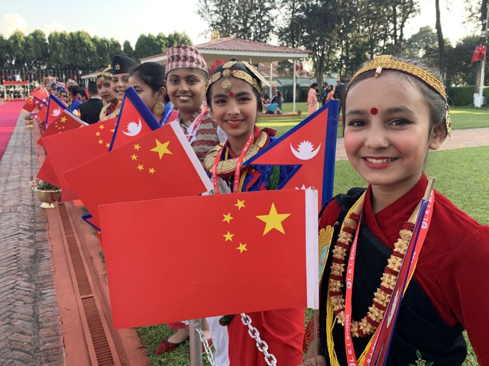 2019年10月12日,尼泊爾首都加德滿都特里布萬國(guó)際機(jī)場(chǎng),尼泊爾孩子們站在紅地毯一側(cè),熱烈歡迎中國(guó)國(guó)家主席習(xí)近平來訪。新華社記者高潔攝