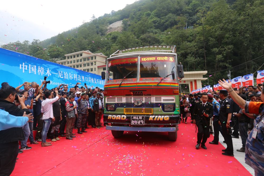 2019年5月29日,一輛尼泊爾貨車滿載貨物駛過連接中國(guó)和尼泊爾的友誼橋。新華社記者周盛平攝