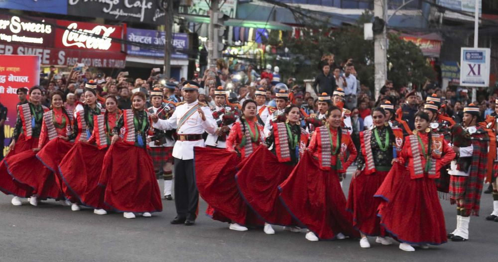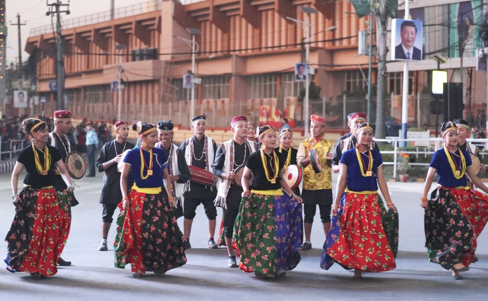 2019年10月12日,尼泊爾首都加德滿都,尼泊爾民眾載歌載舞,熱烈歡迎中國(guó)國(guó)家主席習(xí)近平來訪。新華社記者丁林?jǐn)z