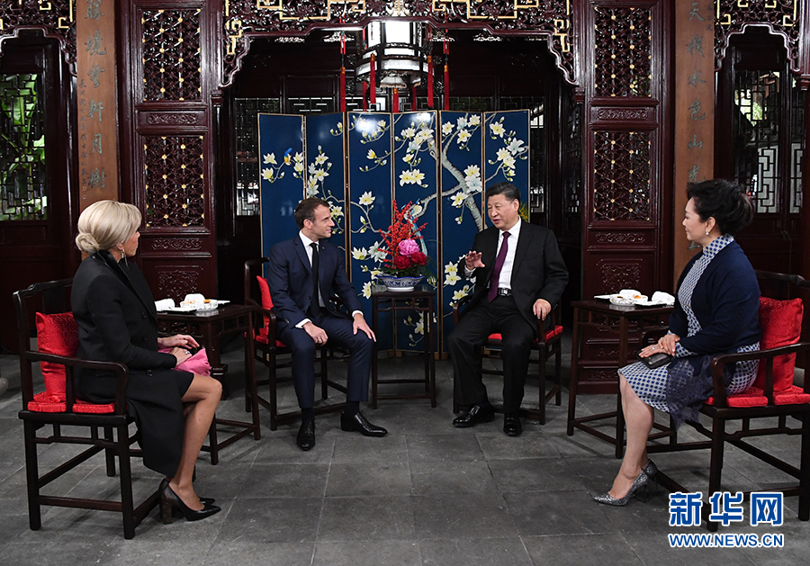 兩國元首夫婦在玉華堂落座。習近平和彭麗媛愉快地憶及今年3月訪問法國受到馬克龍夫婦熱情款待的情景。習近平說,歡迎馬克龍總統(tǒng)再次訪華并第一次來上海。上海是中國改革開放和發(fā)展進步的縮影,體現(xiàn)了近代以來中國同世界關系的演變。希望這次訪問有助于你了解上海、了解中國。我和夫人選擇在豫園款待總統(tǒng)先生和夫人,希望你們能領略中華園林之美和中國的傳統(tǒng)文化。文化藝術表現(xiàn)形式不同,但帶給不同國家民眾的心靈體驗是相通的,不同文化可以和諧共生。中法作為東西方兩大文明代表,應該相互尊重,交流互鑒,各美其美,美美與共。