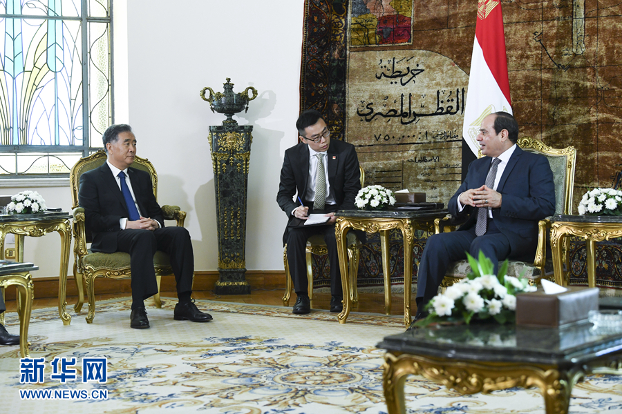 會見塞西時,汪洋轉(zhuǎn)達了習近平主席的親切問候和良好祝愿。汪洋說,在兩國元首共同引領下,中埃關(guān)系實現(xiàn)了歷史性發(fā)展。中方愿與埃方密切高層交往,深化政治互信,積極推進“一帶一路”框架下的務實合作,擴大國際和地區(qū)事務協(xié)調(diào)配合,加強反恐領域合作,推動中埃全面戰(zhàn)略伙伴關(guān)系取得更大發(fā)展。剛剛閉幕的中共十九屆四中全會為我們推進國家治理體系和治理能力現(xiàn)代化、實現(xiàn)民族復興構(gòu)筑了可靠的制度大廈,為人類制度文明貢獻了中國智慧和中國方案。中方愿與埃方加強治國理政經(jīng)驗交流,支持埃方走符合本國國情的發(fā)展道路。