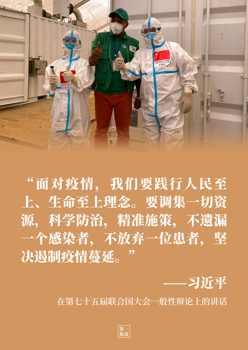在第七十五屆聯(lián)合國大會(huì)一般性辯論上發(fā)表重要講話時(shí),習(xí)主席提出抗擊新冠肺炎疫情的4點(diǎn)倡議,第一條就是“踐行人民至上、生命至上理念”。