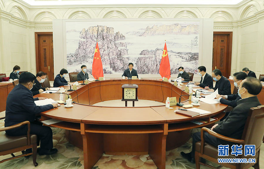 10月30日,中共全國(guó)人大常委會(huì)黨組在北京舉行會(huì)議,傳達(dá)學(xué)習(xí)習(xí)近平總書記在黨的十九屆五中全會(huì)上的重要講話和全會(huì)精神。中共中央政治局常委、全國(guó)人大常委會(huì)委員長(zhǎng)、黨組書記栗戰(zhàn)書主持會(huì)議并講話。 新華社記者 姚大偉 攝
