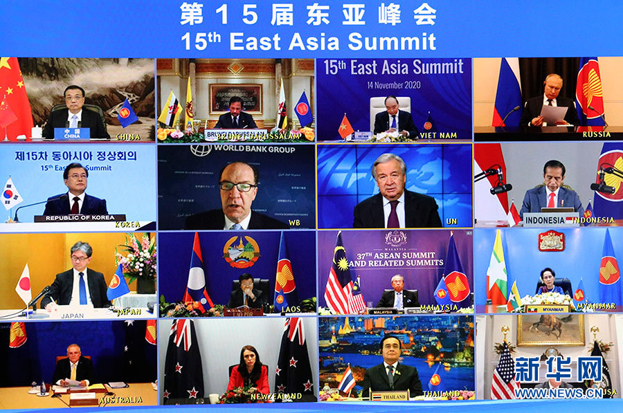 新華社北京11月14日電 國務(wù)院總理李克強(qiáng)14日晚在人民大會(huì)堂出席第15屆東亞峰會(huì)。東盟十國領(lǐng)導(dǎo)人以及俄羅斯總統(tǒng)普京、韓國總統(tǒng)文在寅、日本首相菅義偉、澳大利亞總理莫里森、新西蘭總理阿德恩、印度外長蘇杰生、美國總統(tǒng)國家安全事務(wù)助理奧布萊恩等與會(huì)。越南總理阮春福主持會(huì)議。會(huì)議以視頻形式舉行。