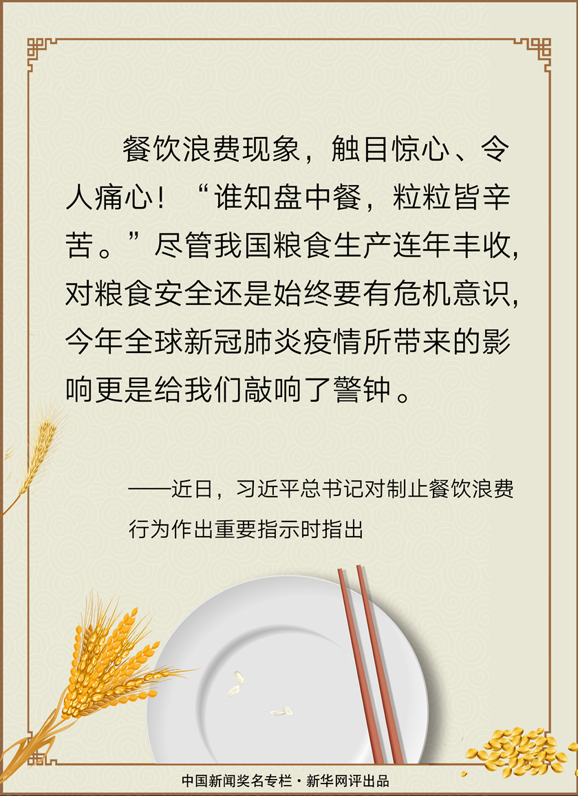 習(xí)近平作出重要指示強調(diào) 堅決制止餐飲浪費行為切實培養(yǎng)節(jié)約習(xí)慣 在全社會營造浪費可恥節(jié)約為榮的氛圍