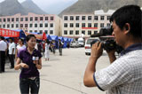 新華社音視頻部記者在甘肅舟曲進(jìn)行報道