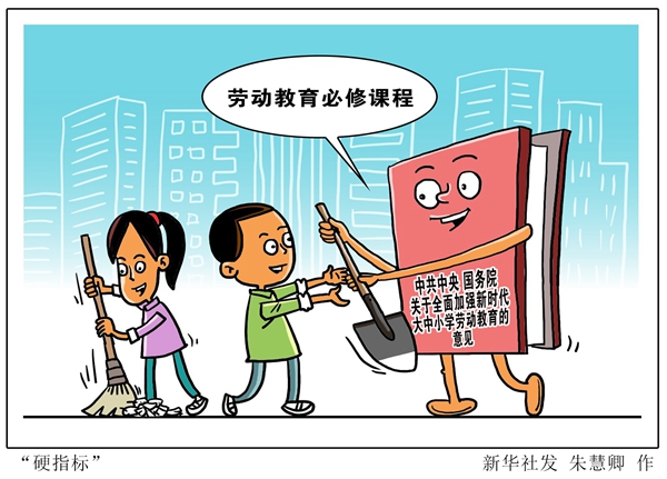 新華社北京3月26日電(記者施雨岑)把勞動教育納入人才培養(yǎng)全過程、在大中小學設立勞動教育必修課程、每年有針對性地學會1至2項生活技能……《中共中央 國務院關于全面加強新時代大中小學勞動教育的意見》近日印發(fā),近年來被淡化、弱化的勞動教育有了“硬指標”。