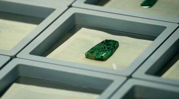 这是天津市武清区博物馆马氏花丝镶嵌制作技艺专题展上展出的马赛的作品(3月23日摄)。