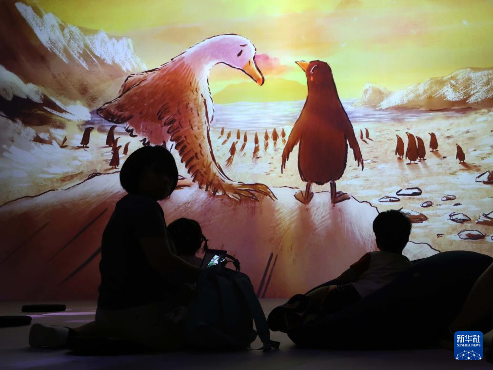 7月4日 ,参观者在“牛津话绘本世界沉浸式互动体验”展览上参观。