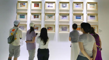 7月24日,观众在清华大学艺术博物馆欣赏画作。