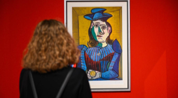 10月12日,一名男子在伊朗首都德黑兰的马利克国家博物馆参观“丝路长云——中国艺术文化精品展”。