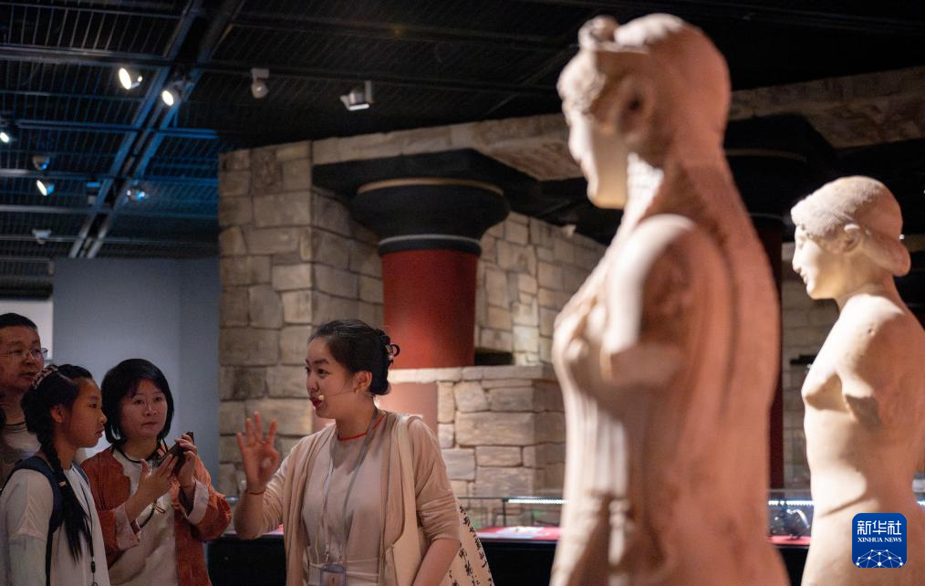 5月18日,游客在甘肃省敦煌市博物馆参观。