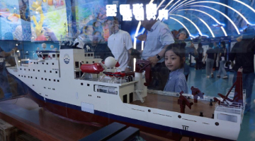 6月6日,在东台西溪天仙缘景区内的东台发绣展示馆,游客观赏发绣长卷《姑苏繁华图》。