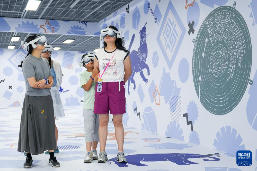 7月10日,观众在南京博物院观看展览的球形视频介绍。
