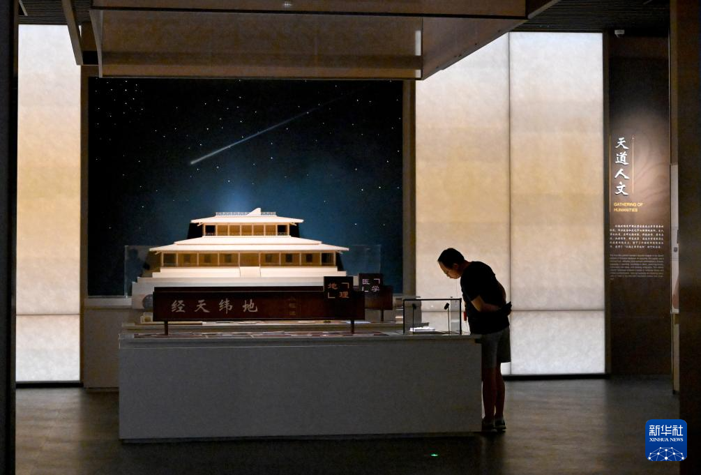 7月16日,参观者在汉魏洛阳故城遗址博物馆观看展品陶百花灯。