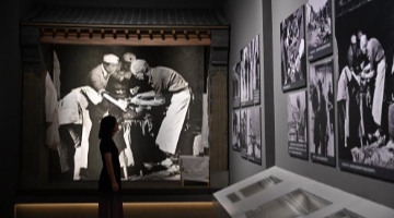 9月27日,观众在中国美术馆参观雕塑作品《苦旅共甘泉》。