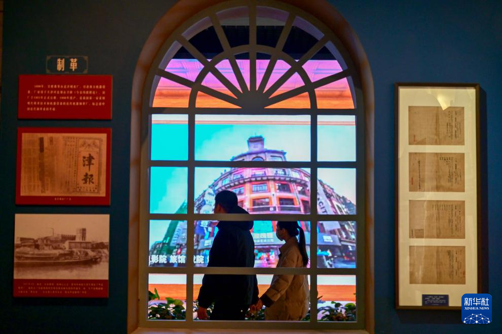1月13日,市民在天津博物馆参观“实业兴邦——近代天津工商业展”,了解天津劝业场相关历史背景。