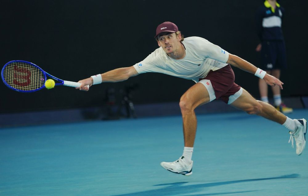 1月25日,德米纳尔在比赛中回球。新华社发(王申摄)
