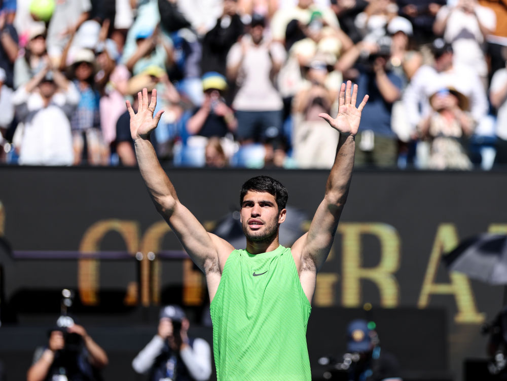 1月25日,阿尔卡拉斯庆祝胜利。新华社记者 马平 摄