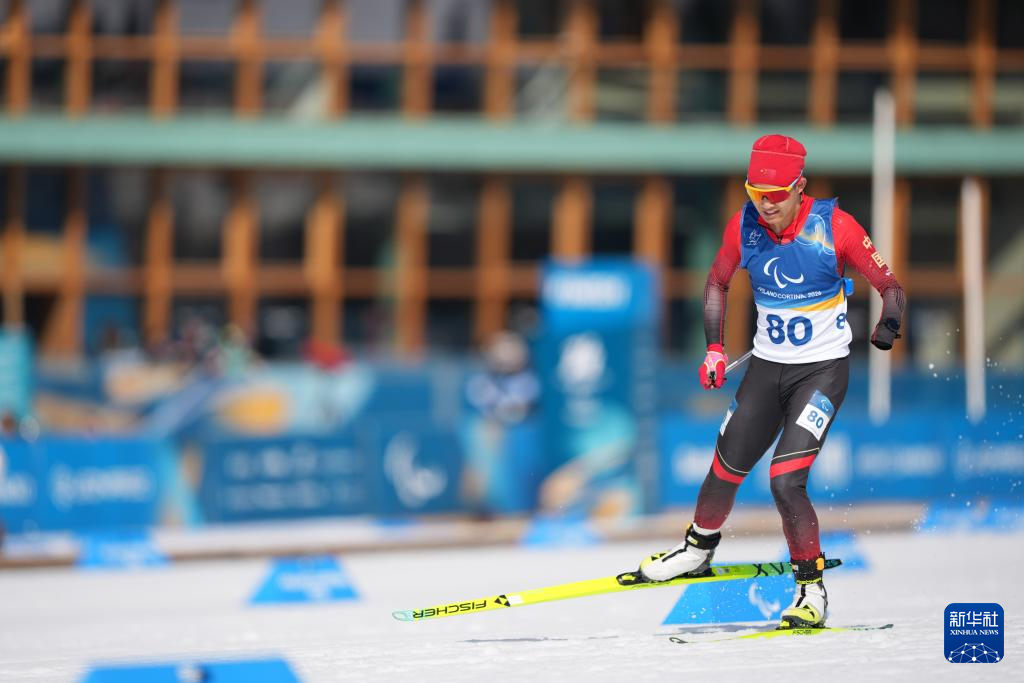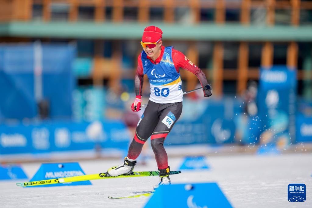 当地时间3月13日,在意大利泰塞罗举行的米兰-科尔蒂纳冬残奥会冬季两项男子短距离追逐(站姿)比赛中,中国选手蔡佳云夺得冠军。