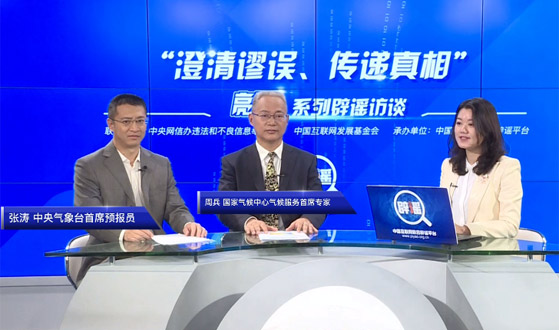 中央網(wǎng)信辦違法和不良信息舉報(bào)中心、中國互聯(lián)網(wǎng)發(fā)展基金會(huì)、中國互聯(lián)網(wǎng)聯(lián)合辟謠平臺(tái)正式推出“澄清謬誤、傳遞真相”系列辟謠訪談。第一期,我們邀請到中央氣象臺(tái)首席預(yù)報(bào)員張濤、國家氣候中心氣候服務(wù)首席專家周兵,為您解讀天氣、氣候等方面的話題。