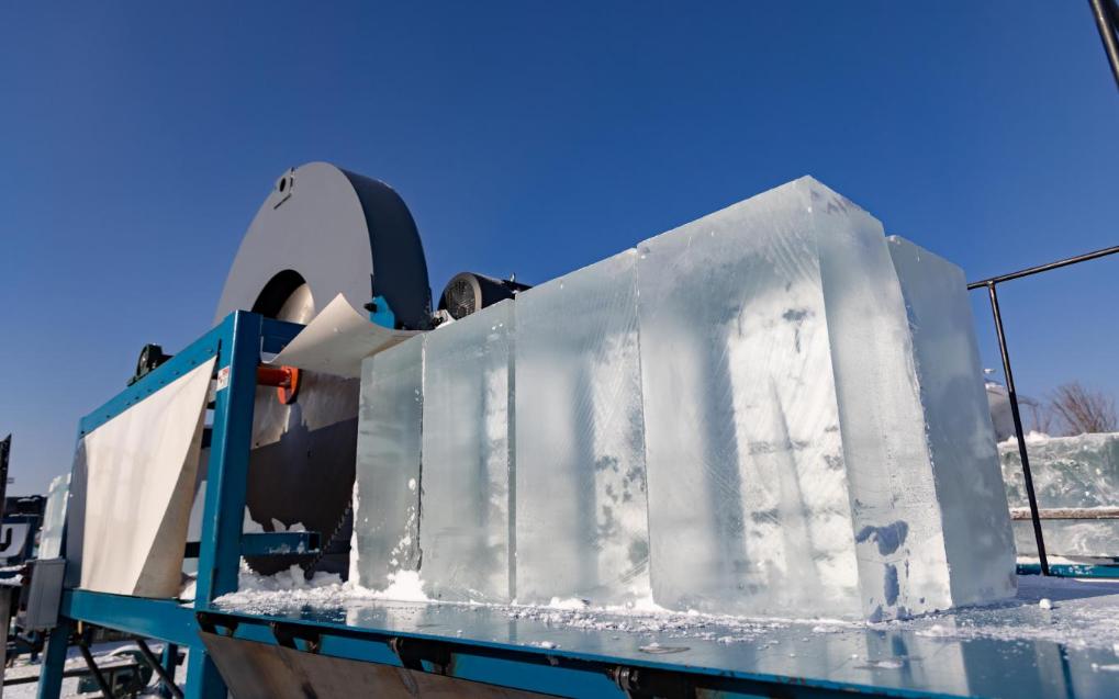 “以往工人手持油锯手工切冰,不仅周期长,冰砌块的质量与施工安全也容易受到影响。”哈尔滨冰雪大世界设计研发部部长丛配玉介绍,“型冰机”的应用实现了机械自动化,减少了施工中的不确定因素,确保冰块达到规范标准。