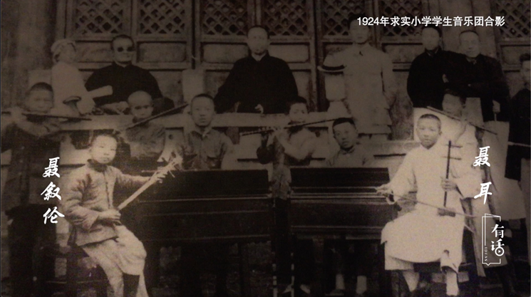 聶耳的媽媽是傣族人,特別喜歡云南的花燈,還有云南的一些民間音樂,傣族民歌。當(dāng)時聶耳的母親都會在睡覺前給比較調(diào)皮的聶耳演唱,所以聶耳是在媽媽的音樂的熏陶下成長起來的。有一個四川的鄰居是個木匠,這個木匠特別喜歡音樂,他會吹一手好的竹笛。他教聶耳吹竹笛,丘木匠也算是聶耳的一個啟蒙音樂老師吧。他會自己手工制作竹笛,他送了聶耳竹笛,開啟了聶耳先生的音樂之門。而且三哥,就是我的外公也和聶耳在學(xué)校里面組織了一個民樂團(tuán)?,F(xiàn)在你們到翠湖還可以看到很多的人會在那載歌載舞,有管樂團(tuán)、有唱歌的,我們開玩笑說那個時候就是聶耳的一個竹笛,我的外公一把三弦或者一個二胡走天下。他們就經(jīng)常跑到翠湖去演奏,很多圍觀的人啊。這算是他們的一個音樂實踐的地方,也是他們很快樂的童年。