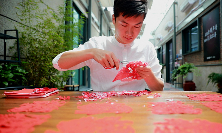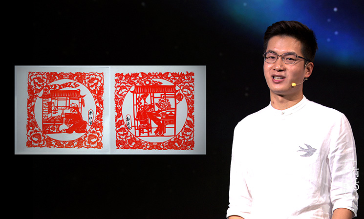 作為一個90后的剪紙傳承人,就要剪一些有新時代特點(diǎn)的剪紙作品。我擅長的是即興創(chuàng)作、脫稿剪紙,速度就是快。我們會了那些傳統(tǒng)的圖案之外,還要能夠看到任何的物體,或者別人給我一個命題就能即時創(chuàng)作。搞剪紙創(chuàng)作一定要豐富自己的知識面,這樣腦海中才會有更多的畫面跟場景。我感覺剪紙是讓我用紙和剪刀在對話,把我的情感通過紙釋放出來。其實(shí)是一種靜修,或者自我的享受。我以后要開展的工作,或許是要承擔(dān)著怎樣讓剪紙?jiān)?0后、10后、20后這些年輕一代的未來人,怎么能認(rèn)識我們這種傳統(tǒng)藝術(shù),這是我一生要去做的事情。