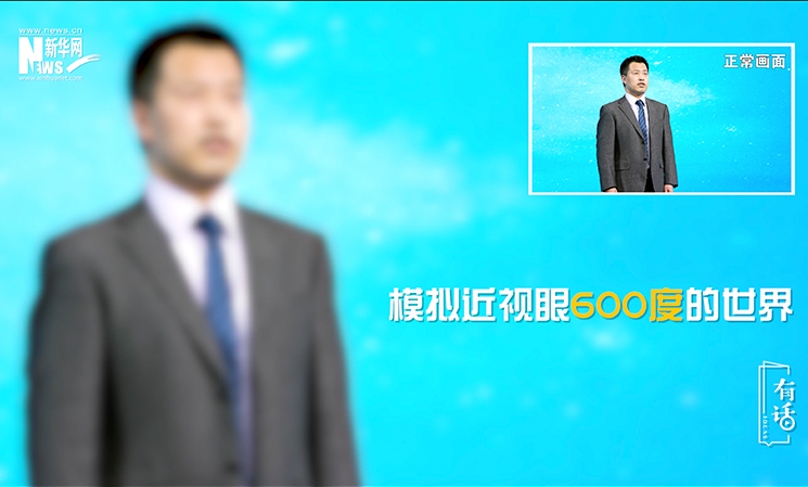 說到這,很多人就會說,近視眼戴副眼鏡就行了,對生活的影響真的這么大嗎?真的會有那么可怕的后果嗎?在這里,我給大家模擬一下,不同視力程度的人看到的世界。我們正常的眼睛看到的世界是清晰明亮的,正如您現(xiàn)在看到鏡頭里的我是清晰的,我臉上的表情你能夠看到。到了200度近視的患者眼里,世界就已經(jīng)開始變得模糊了。這個時候我在說話,我的眼睛在看著你,你還是能看得到的。在這個階段如果我們能夠采取一個合理的矯正方式,是有機會維持并且把我們的視力恢復(fù)到一個正常的范圍。