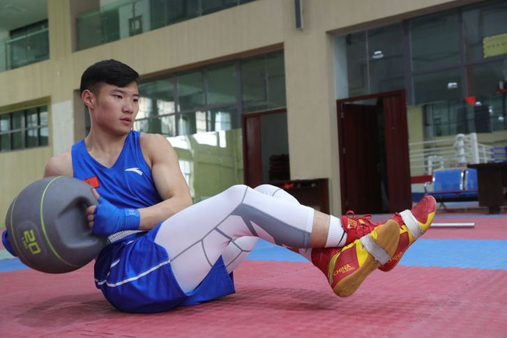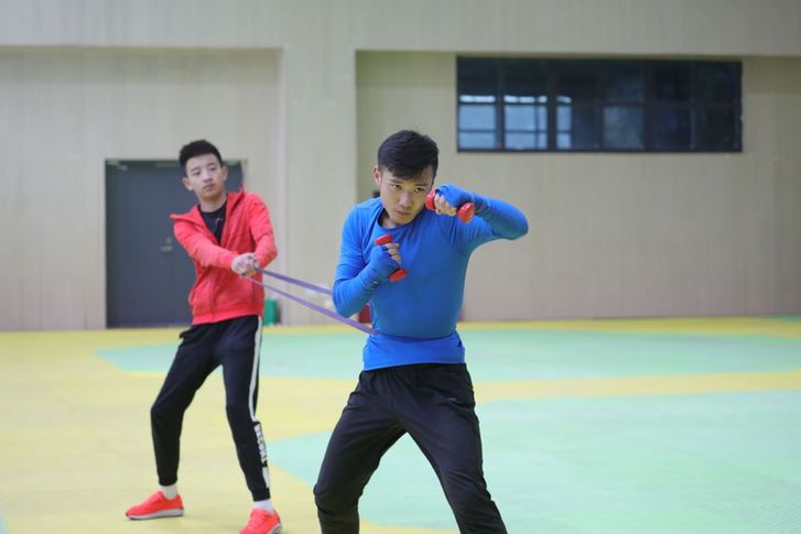 “通過(guò)啞鈴鍛煉肩部耐力,腳腕綁沙袋練習(xí)移動(dòng)速度,用杠鈴加強(qiáng)出拳力量和爆發(fā)力,配合手靶全面練習(xí)。因?yàn)槭菑牧汩_(kāi)始,要想拿到成績(jī),必須付出成倍的努力?!壁w佳偉說(shuō)。