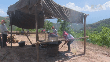 人們?cè)谂R時(shí)搭建的簡(jiǎn)易廚房忙碌
