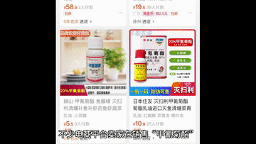 不少電商平臺賣家在銷售“甲氰菊酯”“溴氰菊酯”等產(chǎn)品時,專門標(biāo)注了“水產(chǎn)養(yǎng)殖戶清塘專用”“迷蝦”“捕蝦”等字樣。但賣家同時又提示:產(chǎn)品對魚蝦有毒,請遠(yuǎn)離池塘河流,謹(jǐn)慎使用。