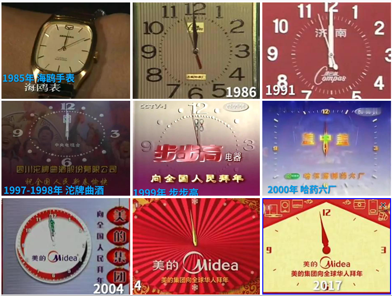 在2011年之前,歷年春晚不乏形式多樣的廣告,比如“企業(yè)賀電廣告”、片尾鳴謝字幕廣告、冠名廣告和報時廣告等。其中報時廣告最受矚目,報時廣告一般出現(xiàn)在春晚開播的時候以及零點倒計時,畢竟在那時,所有的觀眾都盯著鐘表上的秒針一點一點朝著“12”這個數(shù)字走去,這個露出絕無僅有。